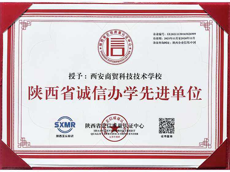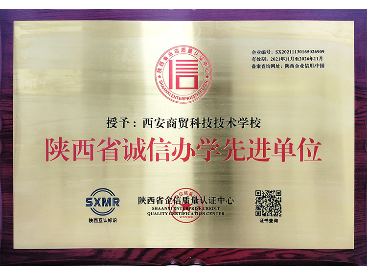 西安商貿(mào)科技技術(shù)學(xué)校成立于2004年,是一所隸屬于陜西省人力資源和社會(huì)保障廳的全日制省屬院校。學(xué)校坐落于西安市未央?yún)^(qū),毗鄰國家AAAA級(jí)漢城湖景區(qū),交通便利,環(huán)境優(yōu)美,設(shè)施完善,占地面積180余畝,綠化率達(dá)45%,三季有花、四季常青,被譽(yù)為“園林式校園”。秉承“厚德強(qiáng)技,知行合一”的校訓(xùn),堅(jiān)持內(nèi)涵式發(fā)展,注重養(yǎng)成教育,培養(yǎng)德、智、體、美、勞全面發(fā)展的高素質(zhì)現(xiàn)代化技能人才。